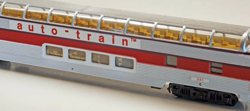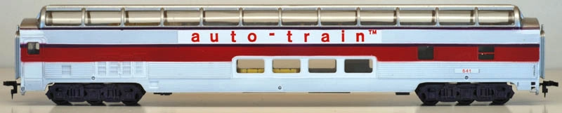 The Auto-Train 85-foot Full-Dome Passenger Car is the first example shown in Bachmann’s catalogs beginning in 1974. The car remains in the Bachmann catalog through the 1979 edition. Below you may click on the image of the Auto-Train train set and find more information regarding this offering that includes a pair of these passenger cars.