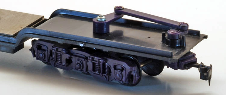 To aid in navigating tight train set curves, Bachmann’s design for the 85-foot Full Dome includes an interesting steering coupler. Illustrated above is an Auto-Train example showing the rod and arm assembly that makes the truck and coupler turn in unison.